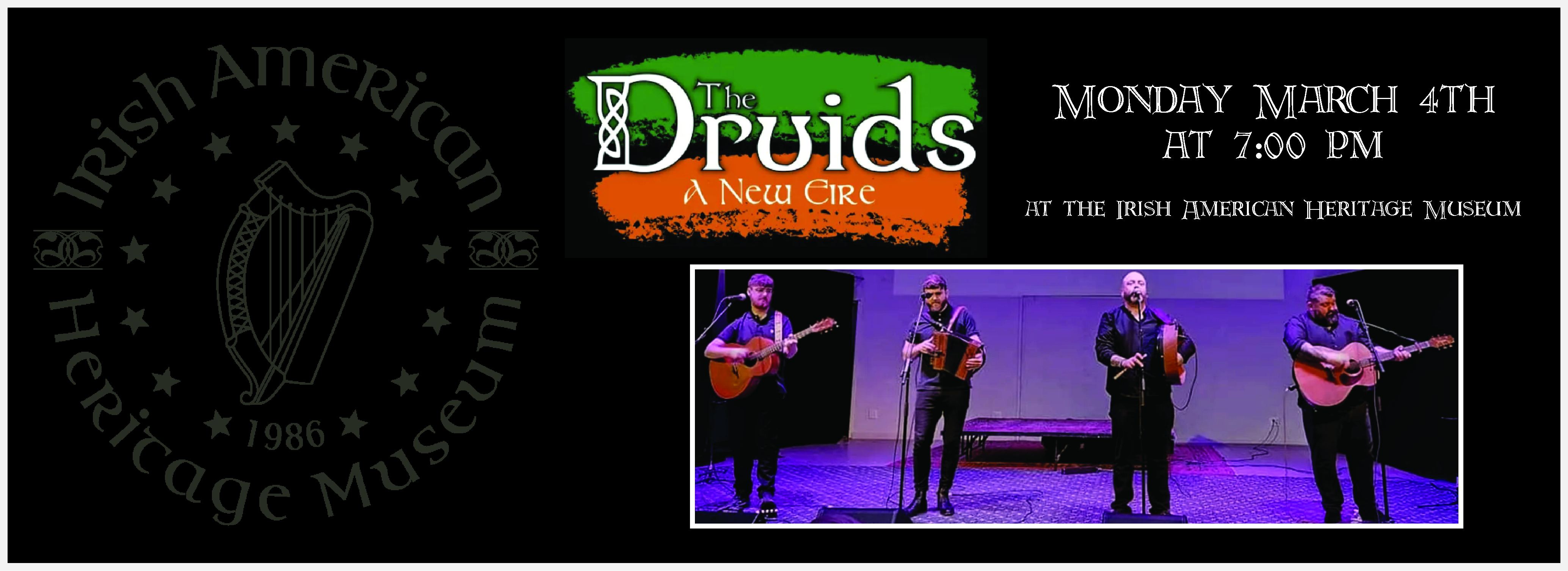 We are delighted to announce the return of The Druids Irish Folk band in Albany on Monday March 4th at 7.00pm. This 4 piece band is based in Co. Kildare Ireland and are an international award-winning band with a brilliant collection of Irish music, stories and craic! Their new, theatre-based show, 'The History of Ireland through Song,' is both educational and entertaining, describing all the different eras of Ireland's history, and is a must for all lovers of Irish song, music, and history.