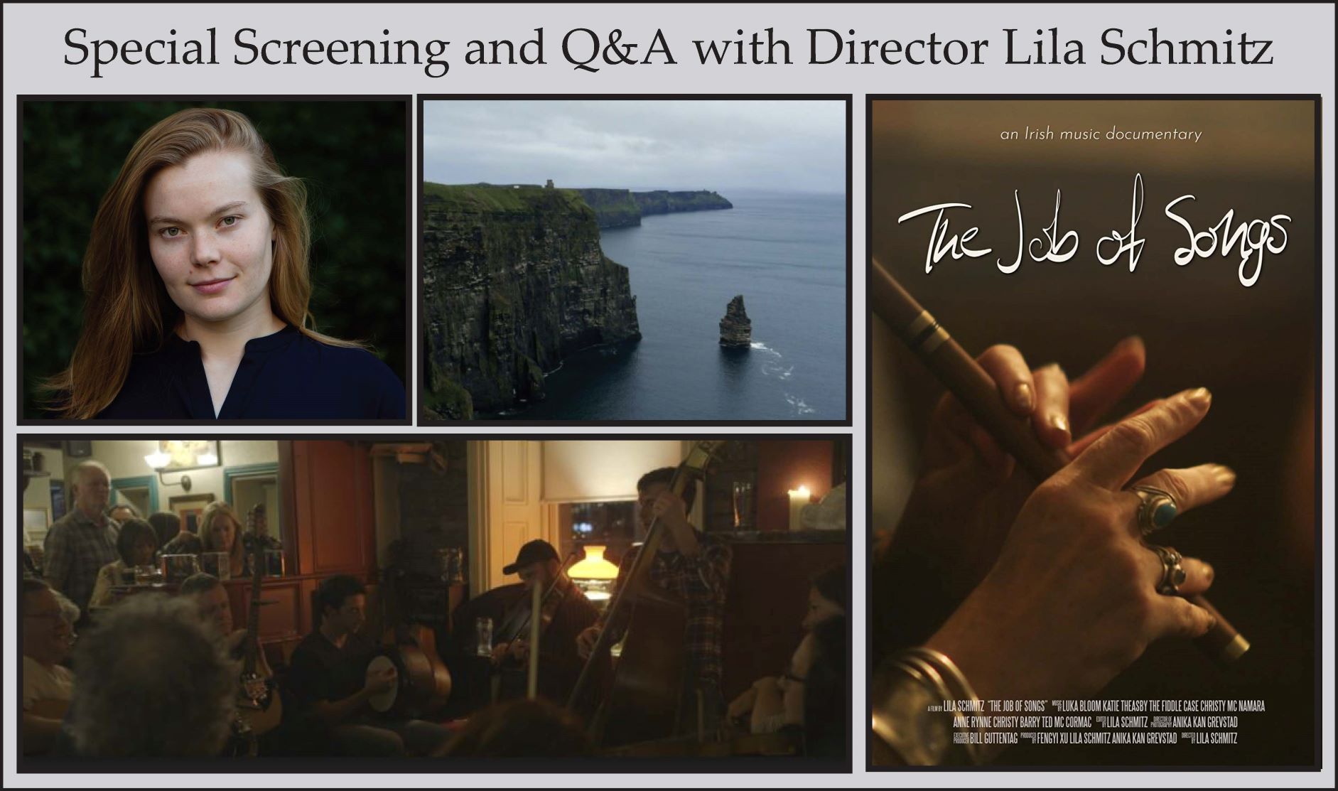 The Job of Songs is Lila Schmitz feature directorial debut. She came across Doolin while visiting her Irish relatives, and the music captivated her so fully that The Job of Songs came into being. Her short music documentary Jaiel aired on Rocky Mountain PBS, as did her short fiction film Queer Qafé. Her latest short film love in the time of corona screened this year at NewFest, aGLIFF/Prism Film Festival, the Palm Springs LGBTQ Film Festival, and Desperado LGBTQ Film Festival.